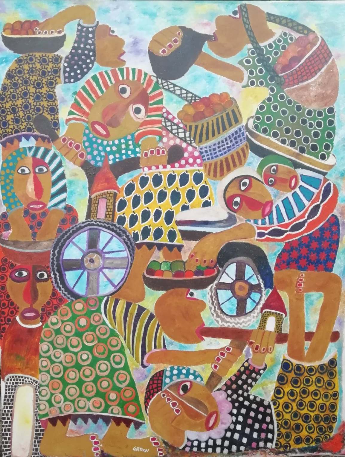 Kamau “Cartoon” Joseph was born in 1973 in Ngecha, just outside Nairobi. He first painted in the nearby Banana Hill Studio, and then he exhibited his work at Watatu gallery and also internationally.