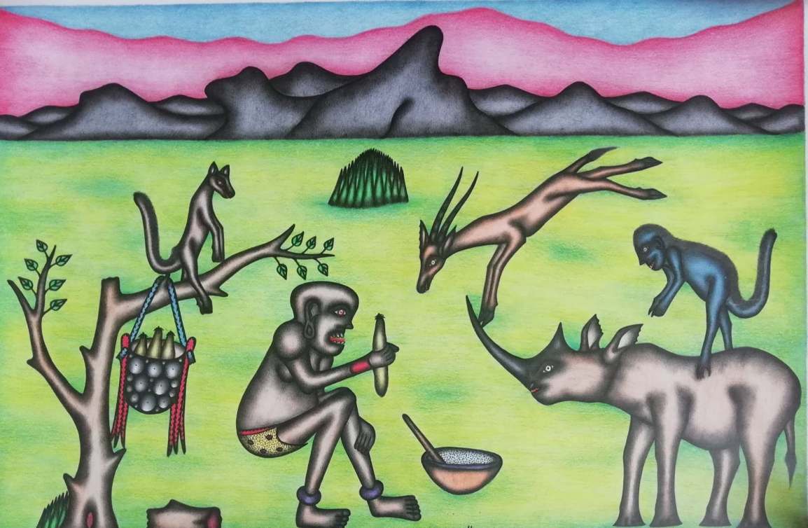Kivuthi Mbuno (born in 1947) is a renowned Kenyan surrealist artist. Surrealists – create illogical scenes that they display with precision – try to eliminate the opposition between dream and reality and give the unconscious a voice.